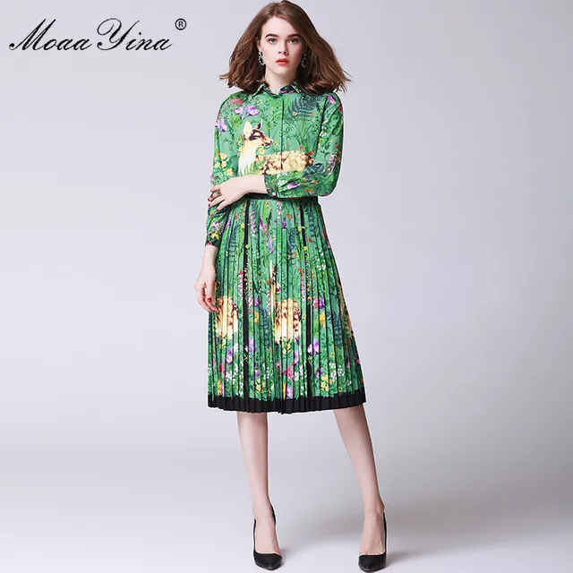 Cheap two-piece suit, Buy Quality runway set directly from China suit suit Suppliers: MoaaYina Fashion Designer Runway Set Spring Women Long sleeve Floral-Print Fawn Casual Shirt+Pleated Half skirt Two-piece suit Enjoy Free Shipping Worldwide! Limited Time Sale Easy Return.