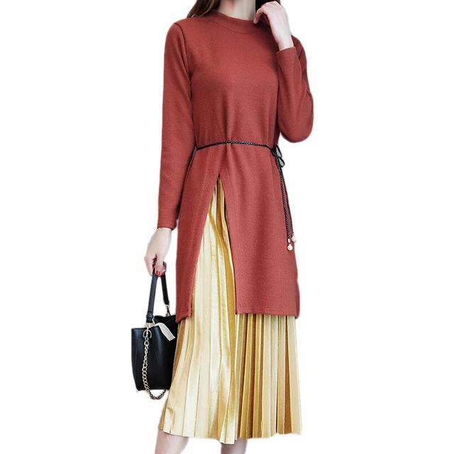 Cheap - Plus Size Women's Sets 2017 Autumn Winter 2 Pieces Of Sets Fashion Knitted Shirt + Pleated Skirt Two-piece Suit For Women M-5XL Excellent