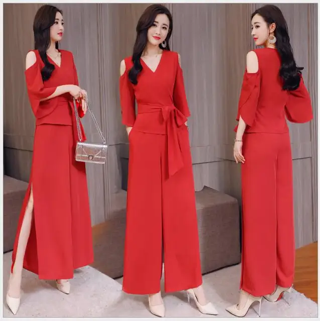 Special Offers 2018/ women's chiffon split wide leg pants suit female M-2XL new summer fashion two-piece suit