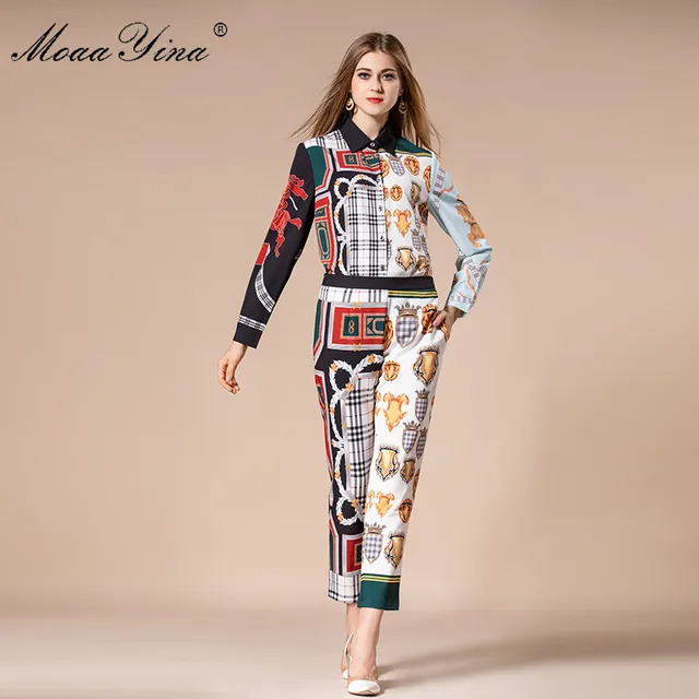 For Sale - MoaaYina Fashion Designer Set Autumn Women Turn-down Collar Vintage Floral Print loveliness Elegant Tops+Trousers Two-piece suit Cheap