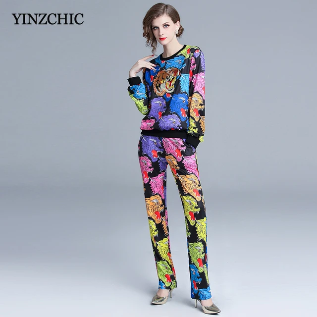 Best Price - Fashion Womans Printed Suits Loose Pullover + Pencil Pants Sets For Woman Tight Print Womens Casual Two-Pieces Suit Wonderfull
