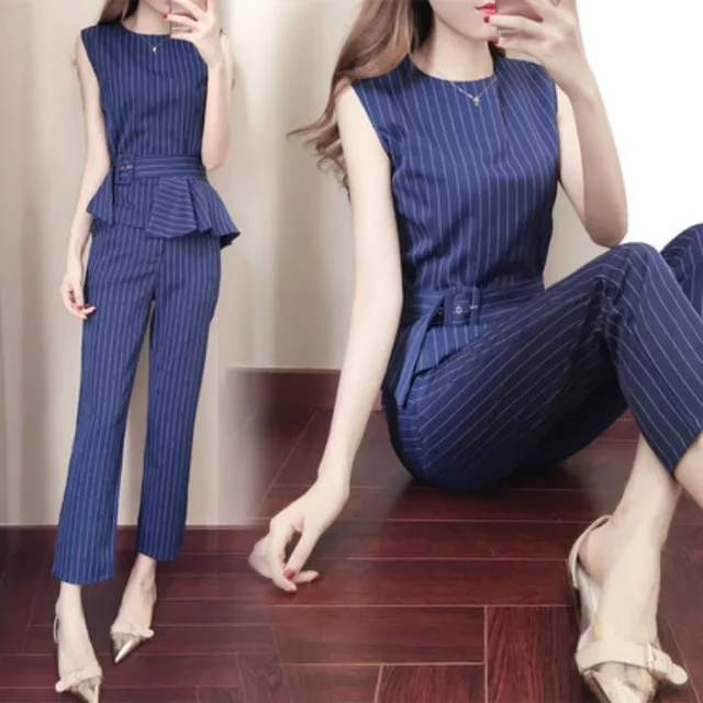 Discounted - Women's suit 2018 summer new fashion blue women's elegant temperament jacket + nine pants casual fashion two-piece suit Best Offers