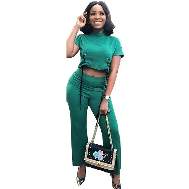 How Do I Get - 2018 casual straps solid color women's two-piece suit women's stock fashion casual lace suit green unique design high street Cheap