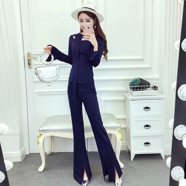 Online - 2018 Spring and Autumn new style temperament Slim fashion shirt high waist was thin split trumpet trousers two-piece suit Special Price
