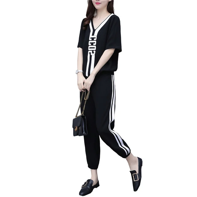 Where Can You Buy - Women Set loose stitch Large Size harem pants elastic waistband temperament work casual women two-piece suit Special Price
