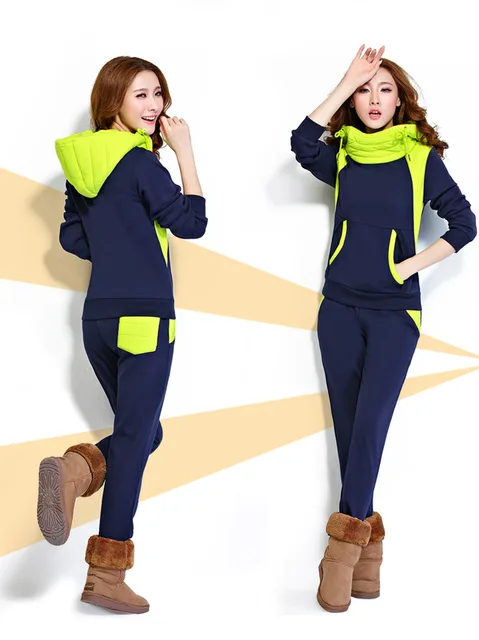 Special Price - 2018 color matching plus velvet sweater sports suit Women's hooded sweater two-piece suit Very Recommended