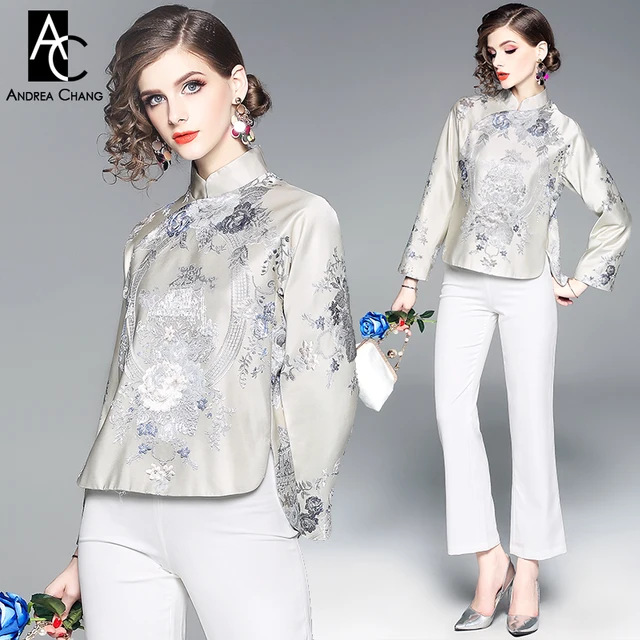 autumn winter woman clothing set Chinese style blue vintage floral pattern beige jacket + white pants vintage two-piece suit set. US $75.87. Orders (0) Collects (0) $61.47. autumn winter woman clothing set white ruffled cuff collar ruffled waist white strip pattern dark blue coat + pants office suit.