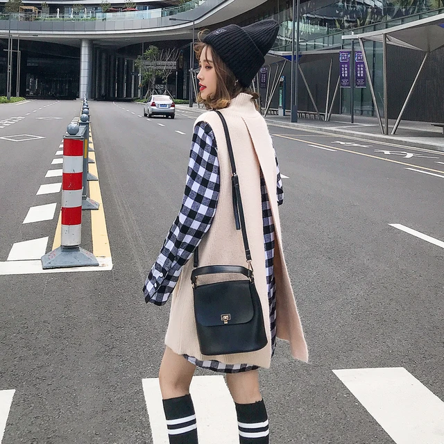 Online - autumn new women's clothing han edition plaid shirt sweater vest skirt small pure and fresh and two-piece suit 2018 female Best Price