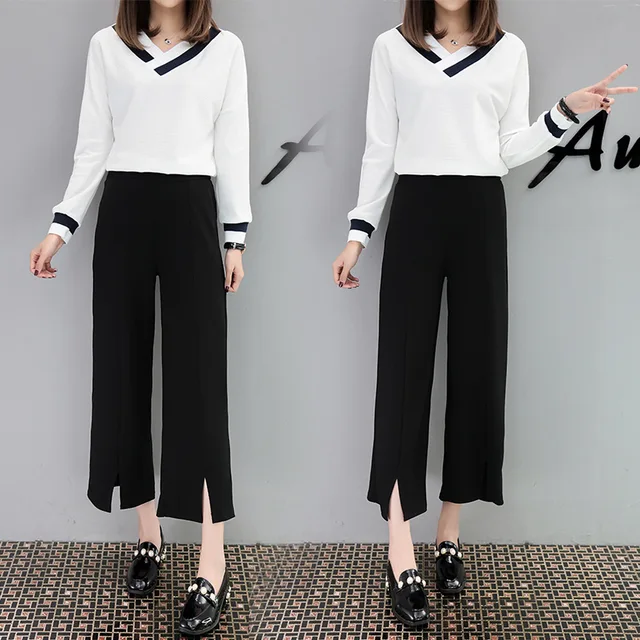 What Is The Best Price For - women's costumes new fashion temperament solid color long-sleeved clothes + casual elegant nine pants trousers two-piece suit Special Price