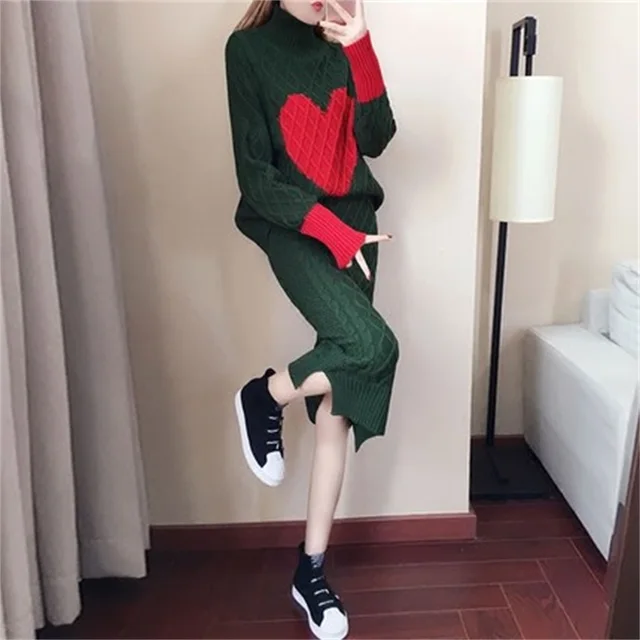 Best Price Women's new spring and autumn winter package hip sweater dress + knit high collar pullover sweater two-piece suit