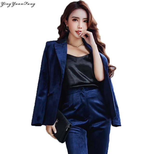 Gold velvet wide leg pants suit fashion suit female 2018 autumn new retro temperament women's suit jacket solid color thick US $21.08 - 43.34 / Set Free Shipping Orders (2)