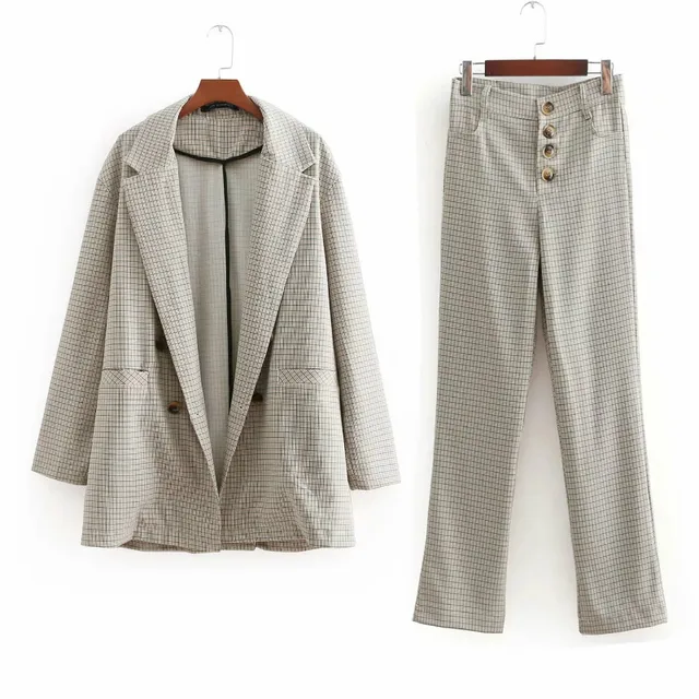 Special Offers Set female 2018 autumn new casual temperament lattice lapel long sleeve small suit jacket + Slim wild long two-piece suit