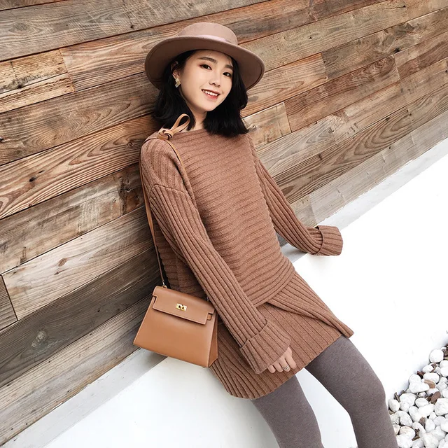 Low Cost - 2019 New Autumn And Winter Collar Collar Stripe Sweater Knit Skirt Fashion Two-piece Suit Women Special Offers
