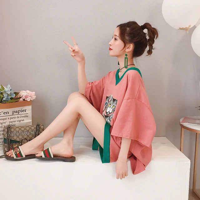 Special Offers - 2018 Women's new temperament fashion casual wild loose clothes + comfortable student elegant refreshing shorts two-piece suit Excellent