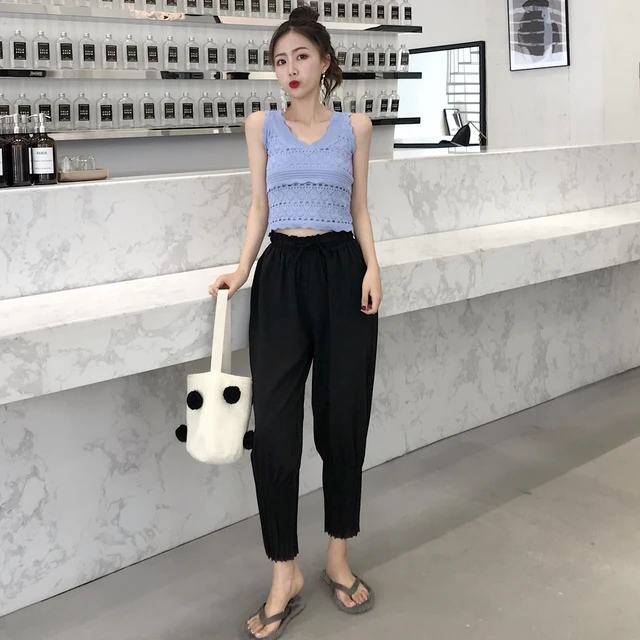 Best Price - Summer Dress Women's Two-piece Suit Hollowed-out V Collar Short Knit Vest Knit Very Good