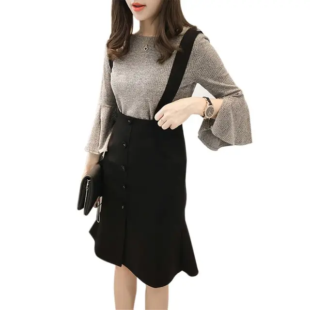 How Do I Get - Women Ruffle Bottoming Shirt+Strap Dress Two-piece Suit Female Autumn Winter Clothing Set Cheap