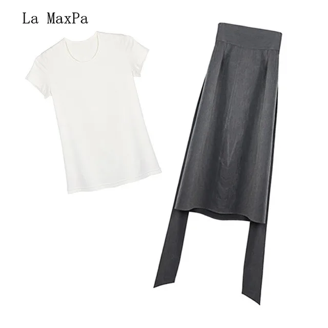 Who Sells Sheap - La MaxPa 2018 summer new women's small fresh wild short-sleeved solid color cotton T-shirt irregular skirt two-piece suit Best Offers