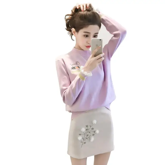 Best Price - girl thick sweater & woolen Cloth skirt suits two-piece clothing set autumn winter outfit long sleeve pullover casual women kit Excellent