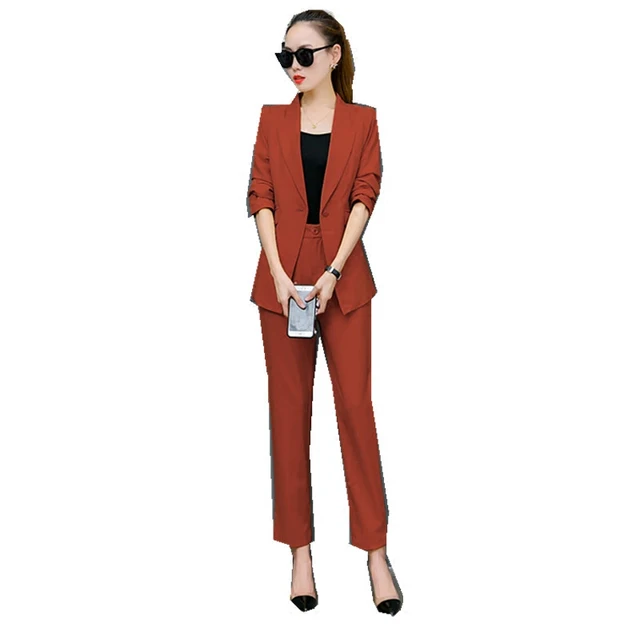 Special Offers - 2018 new style European station ladies suit female fashion solid color temperament was thin suit + nine pants two-piece suit Excellent