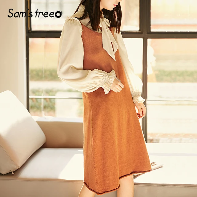 Great price Samstree New Hot Women Fashion Two-piece Suit Spring 2018 Chiffon Petal Sleeve Blouse Bowknot Sexy Knitted Sweater Dress Wfe0eYa2Kc7 £34.88 £29.65 Save: 15% off