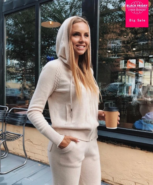 fashion European winter hooded mink cashmere knitted cardigan casual pants zipper feet two pieces couture women suits Women's cashmere knit suit High-end heavy industry Pearls Nail beads Wool knitted lapel sweater + trousers Two-piece women Find Similar. NZ$180.95 2017 new women's cashmere suit twist knitted mink velvet 2 sets V-neck