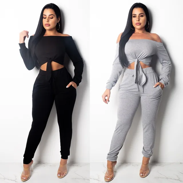 2018 New Sexy Women Off Shoulder Top + Long Pants Ladies Leisure Sport 2pcs Set Outfits Find Similar. Women Rose Printed 2 Piece Sets Sweatsuit Long Sleeve Zipper Leopard Slim Casual Tracksuit Autumn 2 Piece Outfit Leisure Suits New Arrival Women Sexy two piece set Autumn Slash Shoulder Long Sleeve Casual Leisure suit female set