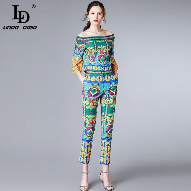 LD LINDA DELLA 2018 New Fashion Runway Pants Two Pieces Set Women's Long Sleeve Floral Print Blouses + Vintage Pants Sets Suit Find Similar. CAD $92.40 Fashion Designer Runway Suit Set Autumn Women Poker Print Long Sleeve Casual Blouse Shirt + Bodycon Skirt Set Women 2 Piece Set D18103106.