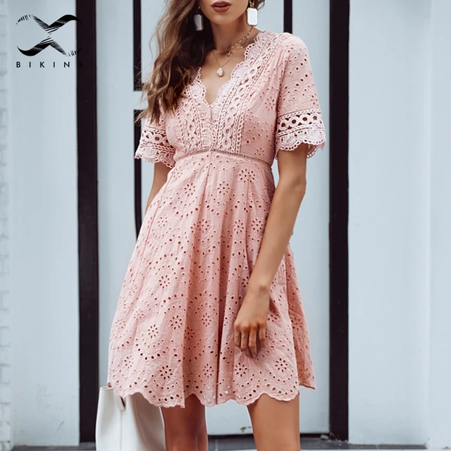 Find More Cover-Ups Information about Bikinx Embroidery tunic v neck beach dress Cotton cover ups pink women dress hollow out beach wear Sexy canga bikini 2018 sarong,High Quality Cover-Ups from Bikinx Store on Aliexpress.com